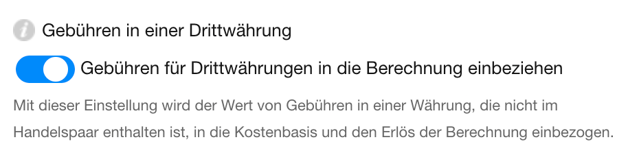 Optionale Einstellung: Drittwährungsgebühren in Trades einrechnen