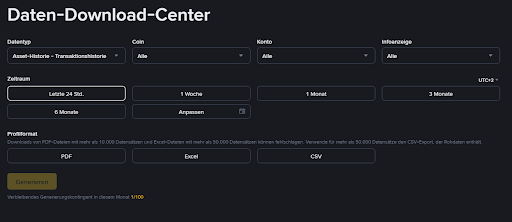 Wähle deinen Zeitraum, setze das Format auf CSV und klicke auf Generieren