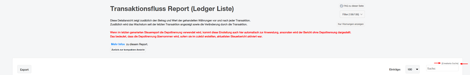 Der Transaktionsfluss-Report übernimmt automatisch die Einstellung aus dem zuletzt erstellten Steuerbericht: