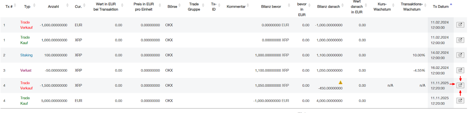 Über das entsprechende Symbol kannst du direkt zur betroffenen Transaktion springen und diese korrigieren.