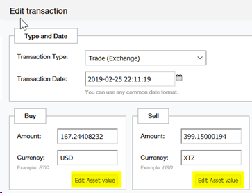 You can manually define the asset value using “Edit Asset Value.”
